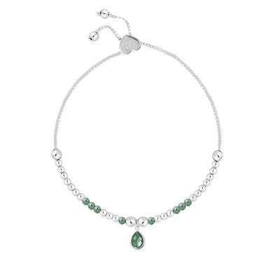 Celebrate May birthdays with this enchanting adjustable slider bracelet, featuring a delicate teardrop pendant adorned with rich emerald-hued gemstones. Thoughtfully packaged in an elegant white gift box, it’s a timeless piece that captures the charm and renewal of spring.