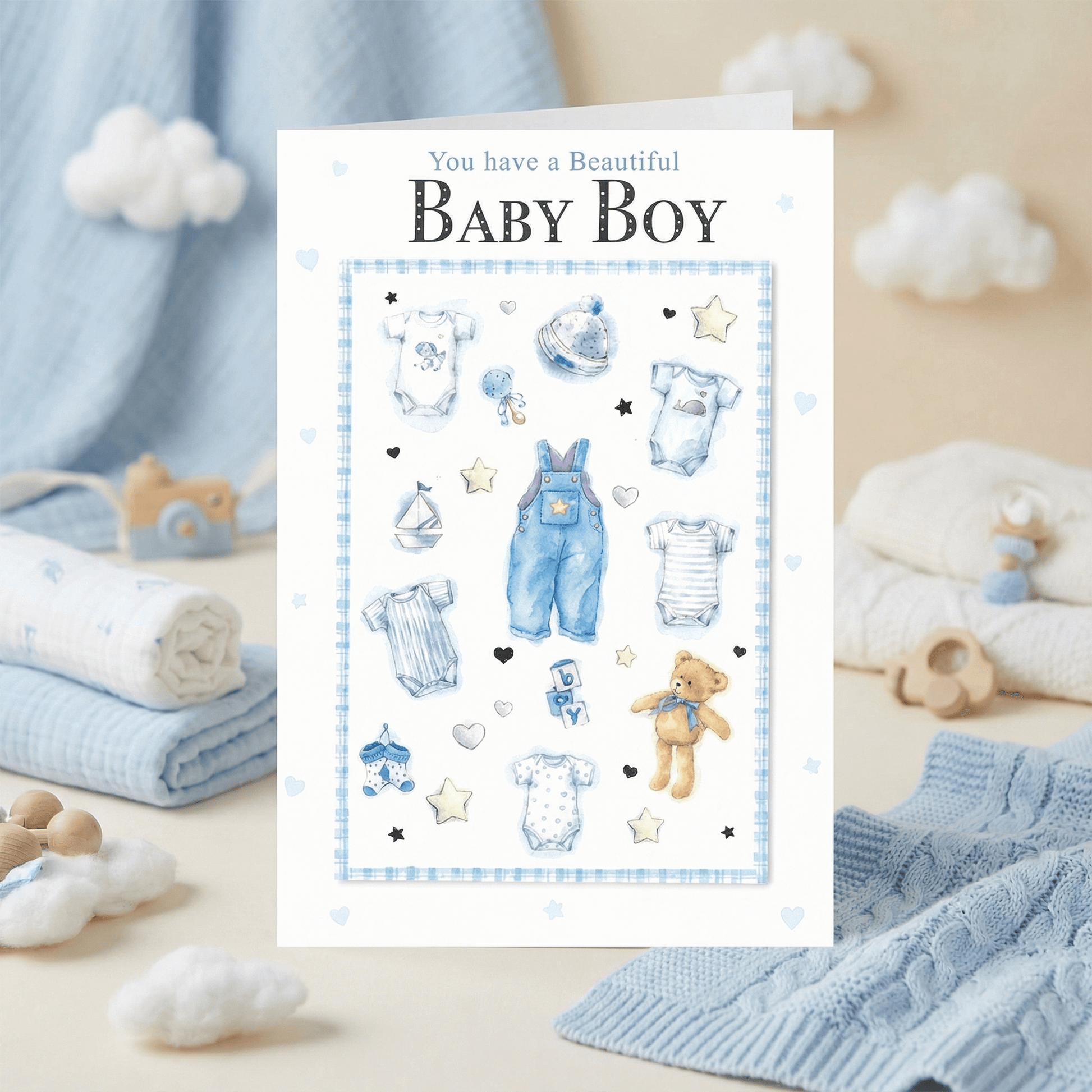 Welcome the newest little man into the world with our Baby Boy greeting card. Thoughtfully crafted for newborn arrivals and baby-shower celebrations, this card brings a touch of sweetness and heartfelt joy — whether used alone or paired with a gift hamper, toys, or keepsakes.