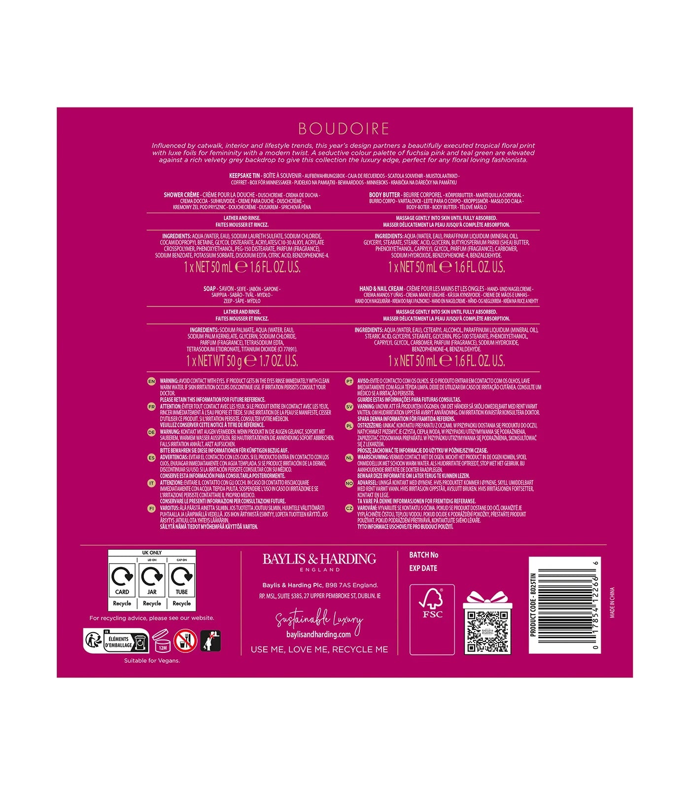 Delight them with a beautifully curated moment of self-care with the Baylis & Harding Boudoire Luxury Pamper Tin — a refined collection of indulgent bath and body essentials, perfectly sized for thoughtful gifting.