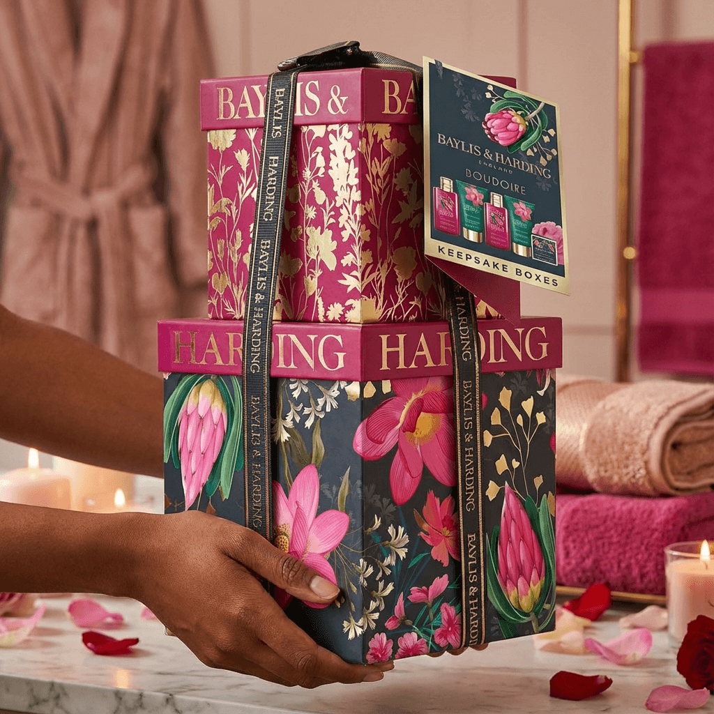 Beautifully presented in a floral keepsake tower tied with a ribbon, this luxurious set is designed to delight at first sight and pamper long after it’s opened. It’s the perfect choice when you want your gift to feel generous, refined, and thoughtfully curated.