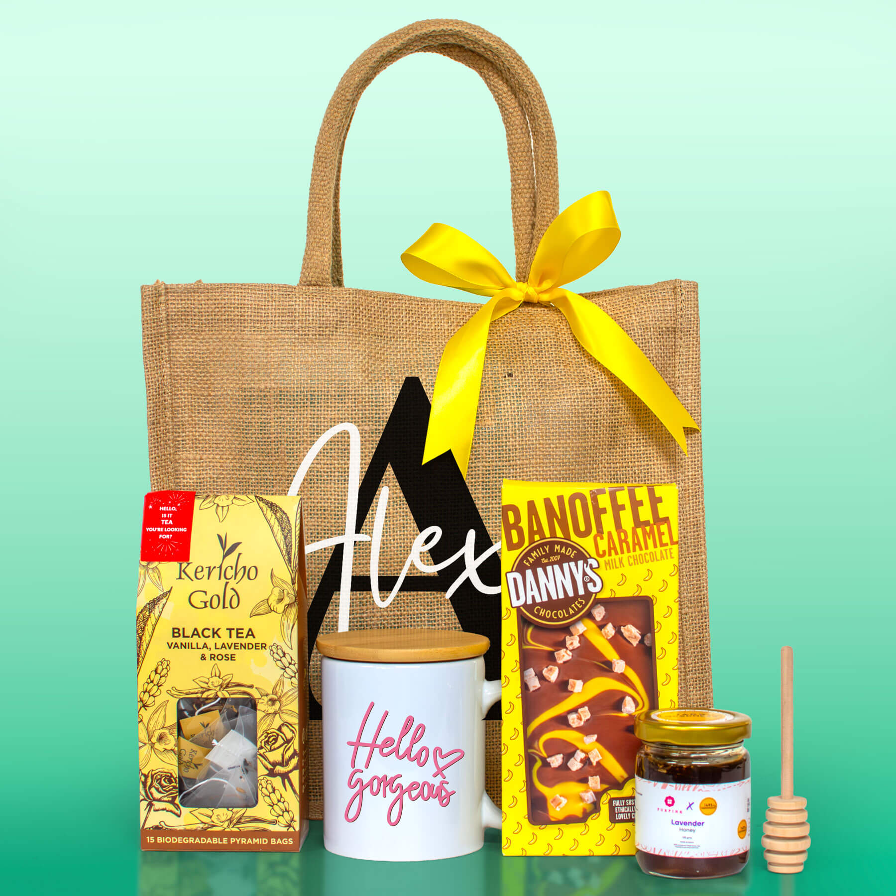 A cheerful pick-me-up for any occasion, birthdays, thank-yous, or simply to brighten someone’s day. With comforting teas, a creamy chocolate treat, and a personalised jute bag, it’s a gift that feels as warm and thoughtful as the sentiment behind it. Beautifully packaged and ready to delight.