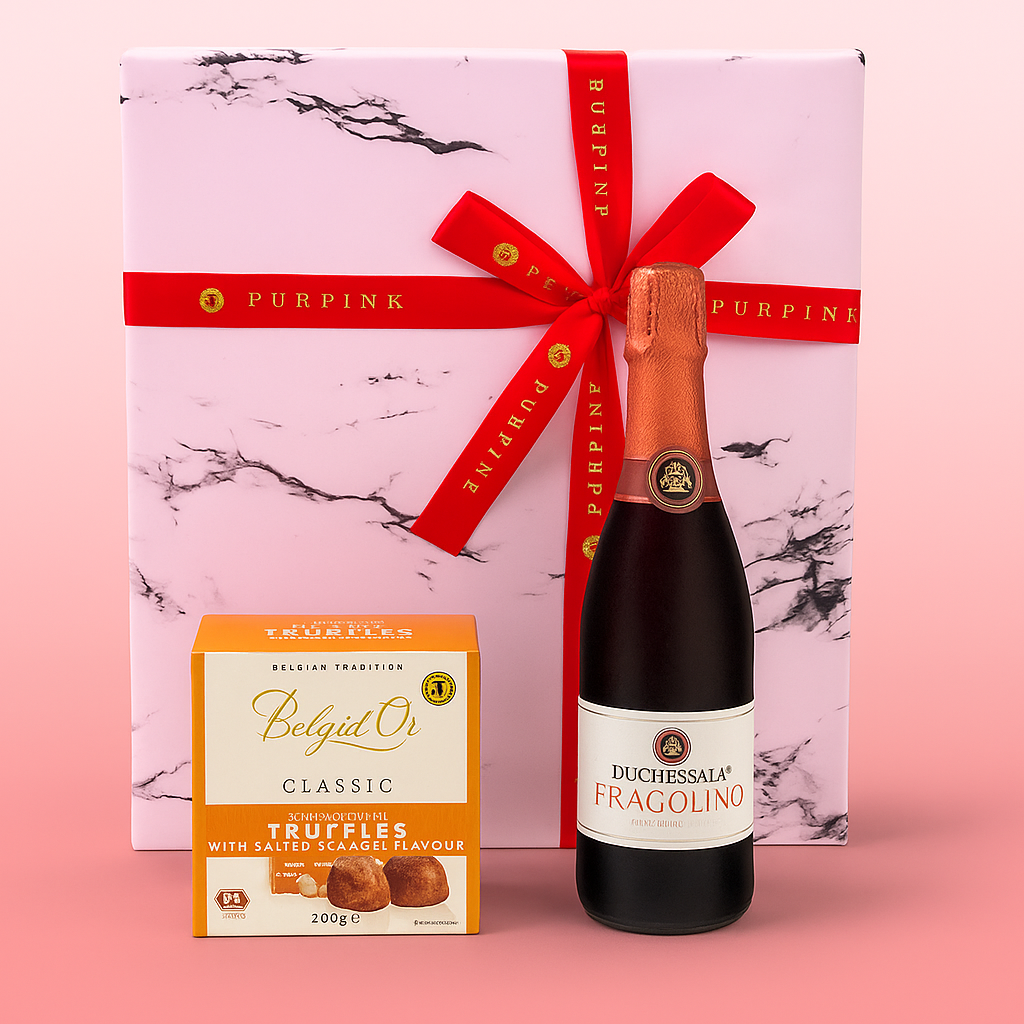 Perfect for a cozy night in, a special celebration, or just a sweet treat for yourself. The combination of the sweet red wine and the delightful Belgian chocolates creates a harmonious experience that is sure to please. Treat yourself or surprise a loved one with this charming duo!